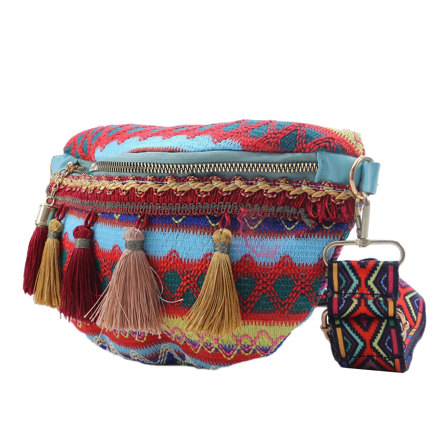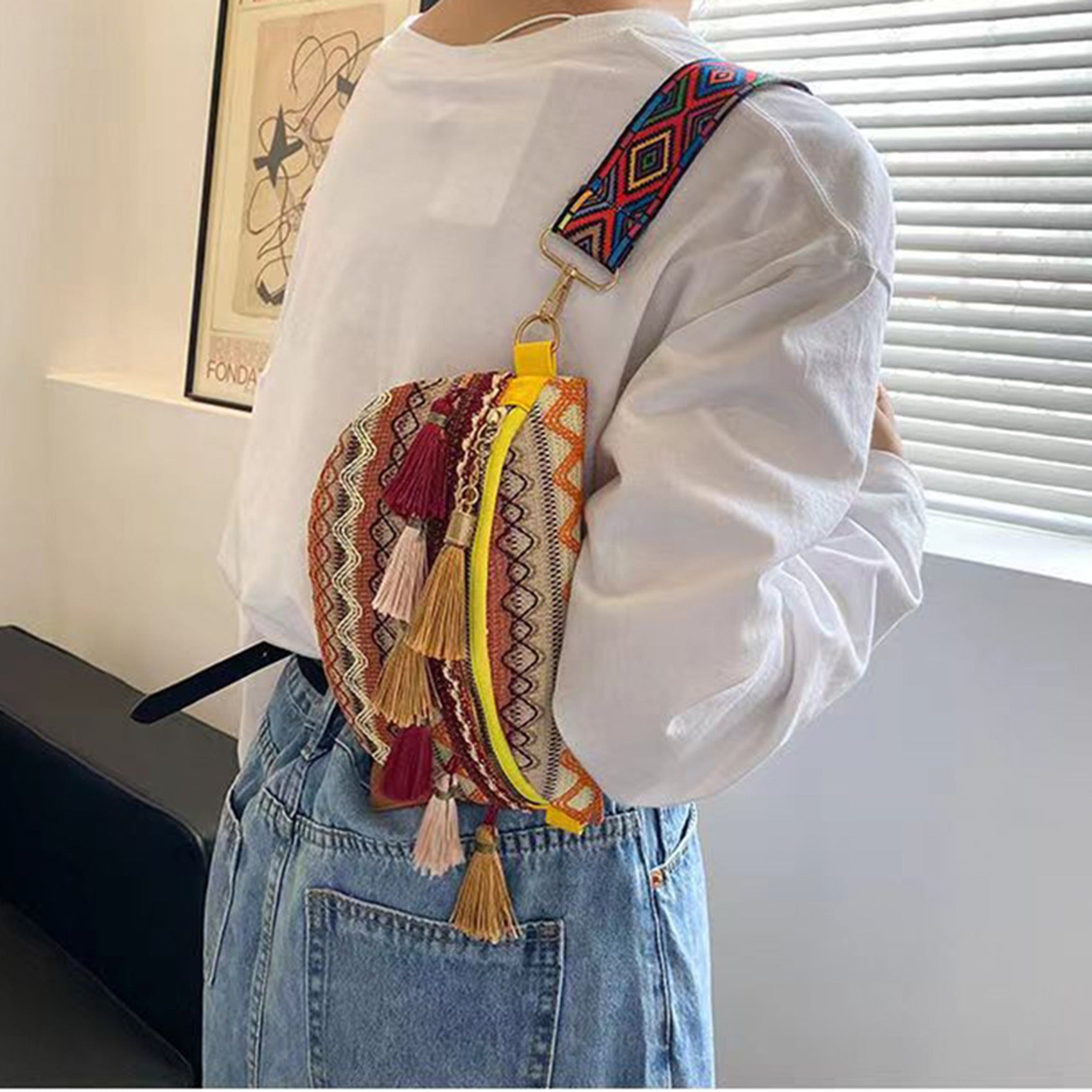 Geef je outfit een speelse en unieke touch met deze bohemian crossbody tas. Met vrolijke patronen, franjes en een brede schouderband is dit de perfecte tas voor festivals, vakanties of een casual dagje uit.