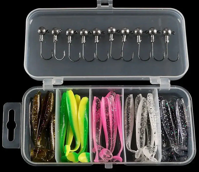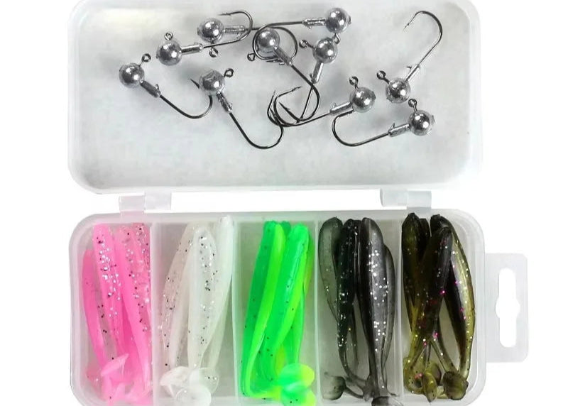 Ga goed voorbereid op pad met deze complete vissenset. De set bevat verschillende zachte shads in opvallende kleuren en stevige jigkoppen, perfect voor het vangen van snoek, baars en andere roofvissen. Dankzij de compacte box neem je alles gemakkelijk mee en heb je altijd het juiste aas bij de hand.
