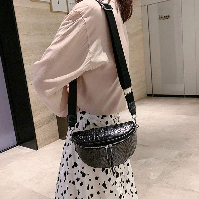 Deze croco heuptas met dubbele rits is de perfecte combinatie van mode en functionaliteit. Het stijlvolle croco-design geeft een chique uitstraling, terwijl de dubbele ritssluiting zorgt voor extra veiligheid en overzicht. Ideaal voor dagelijks gebruik, festivals of een avondje uit.