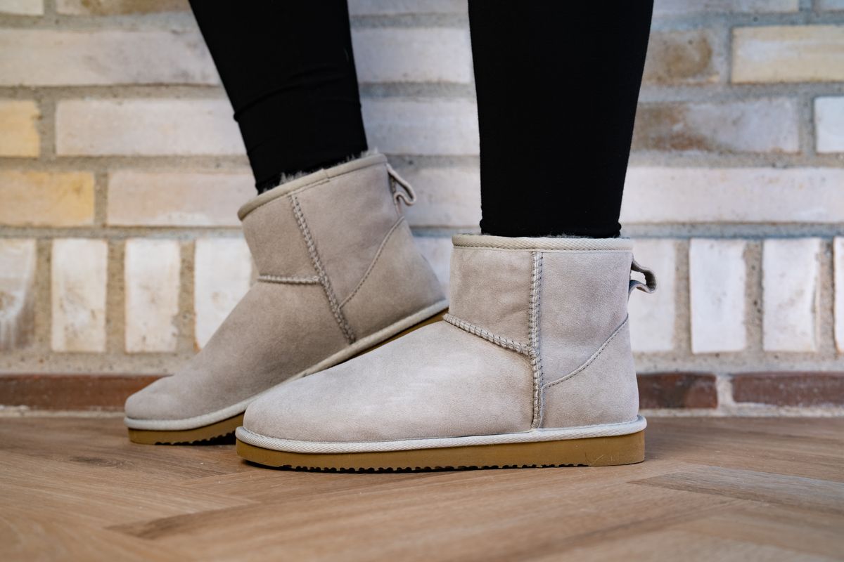 Kies voor warmte, comfort en stijl met deze dames mini boots van suède en echt schapenvacht. Het lage model stopt net boven de enkel, wat zorgt voor een casual en veelzijdige look die makkelijk te combineren is met elke outfit.