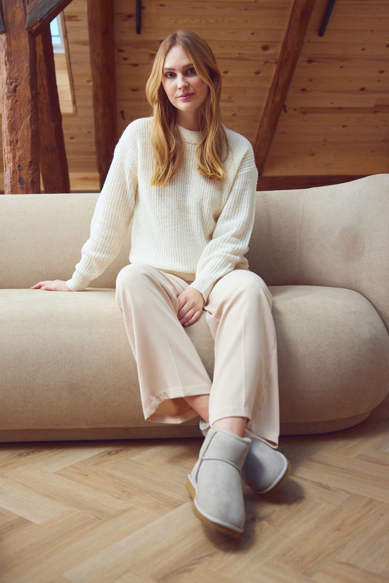 De stevige zool biedt stabiliteit en grip, terwijl de zachte schapenvachtvoering je voeten warm houdt tijdens koude dagen én ademend genoeg is om oververhitting te voorkomen. Dankzij de natuurlijke eigenschappen van schapenvacht zijn deze boots duurzaam, comfortabel en ook geschikt voor mensen met een gevoelige huid.