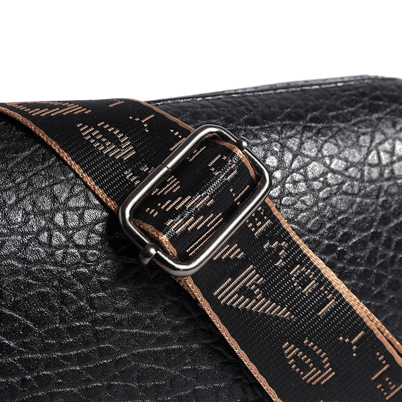 Deze moderne crossbody tas combineert een strak design met optimaal gebruiksgemak. Gemaakt van hoogwaardig PU-leer met een lichte structuur, waardoor de tas een luxe uitstraling krijgt. De brede verstelbare schouderband met patroon geeft een trendy accent en zorgt voor extra draagcomfort. Het hoofdvak biedt genoeg ruimte voor essentials zoals je telefoon, portemonnee en sleutels – ideaal voor dagelijks gebruik of een avondje uit.