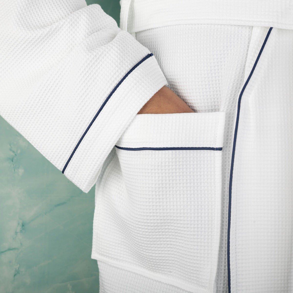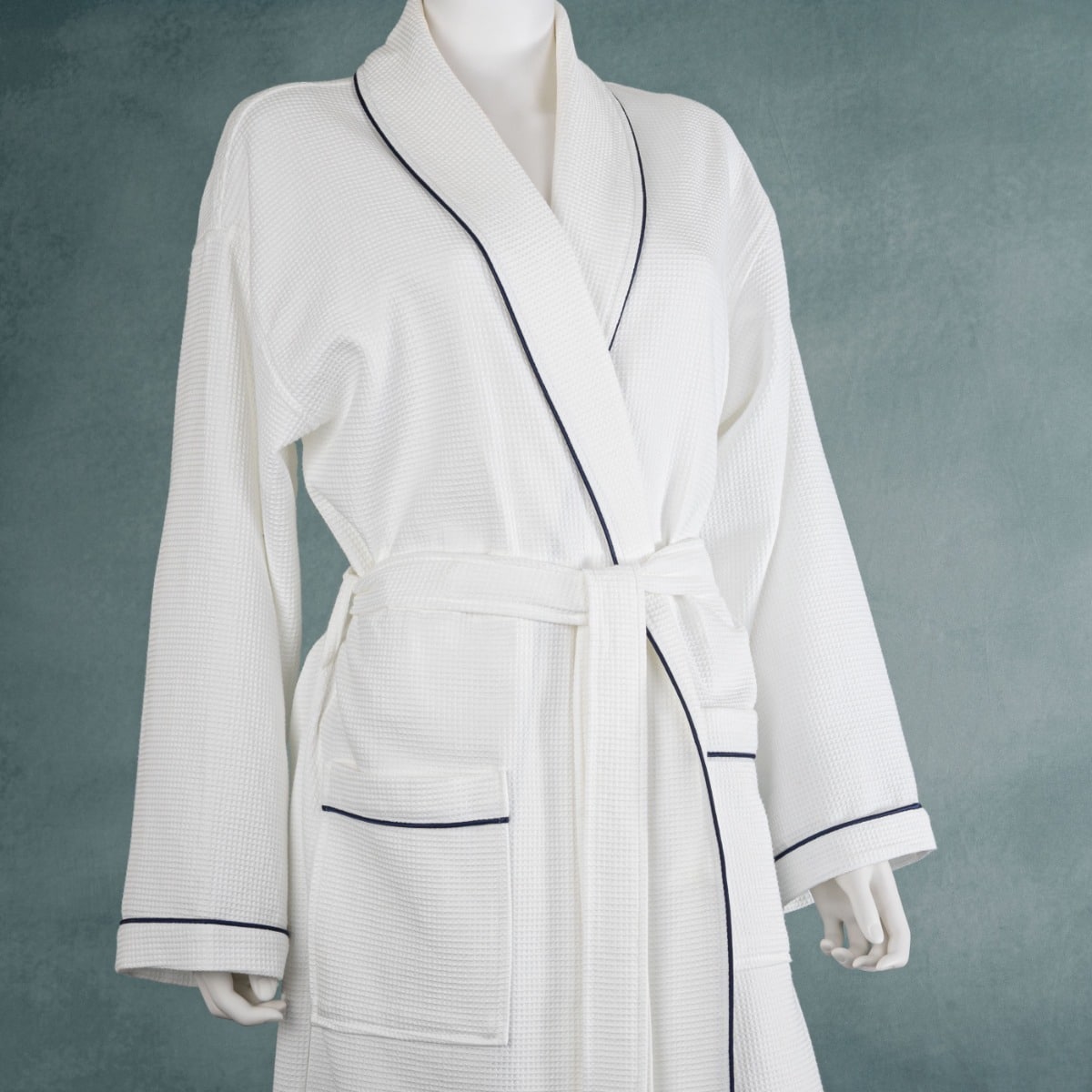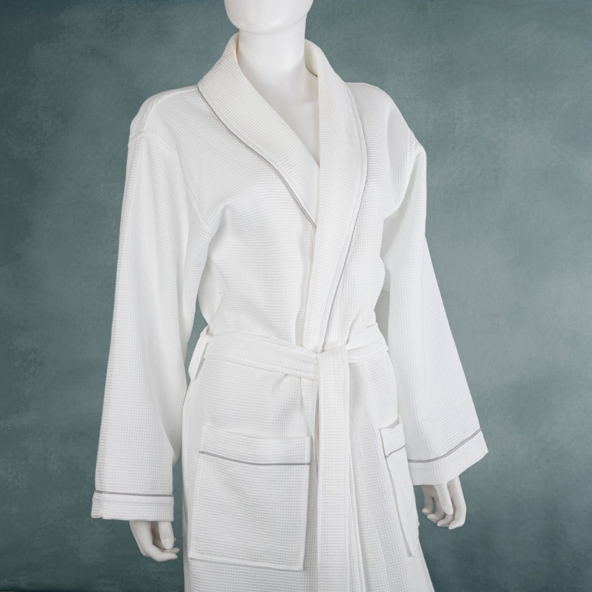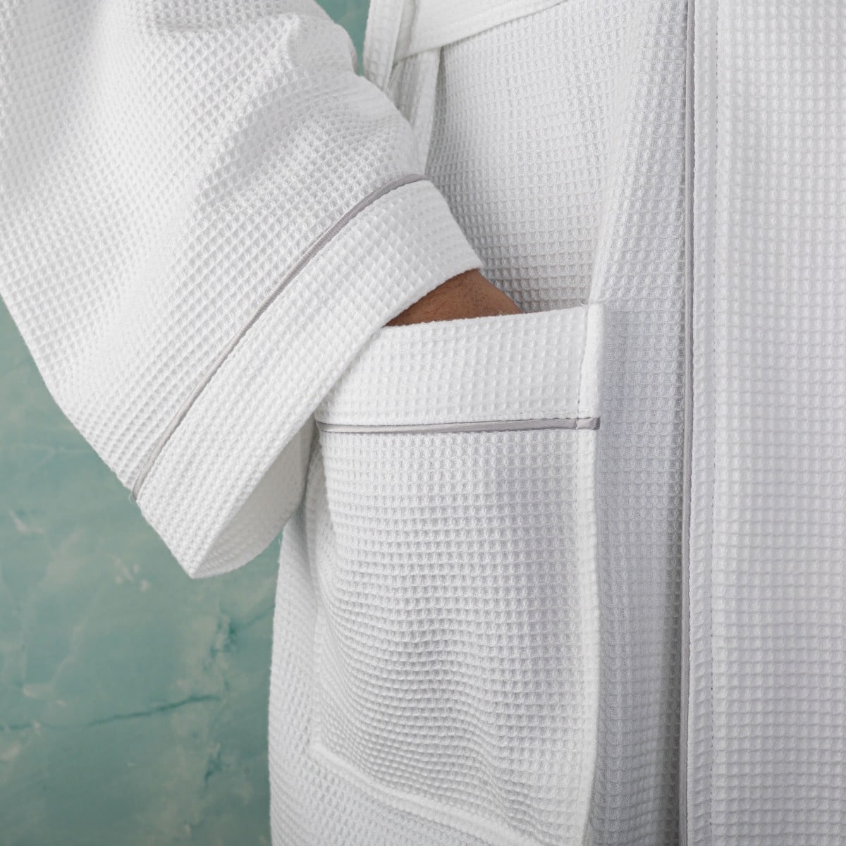 Ervaar pure ontspanning met de Fiji Badjas, gemaakt van 100% katoen in een stijlvolle wafelstructuur. Licht, ademend en heerlijk zacht – ideaal voor lente en zomer of na een frisse douche.
