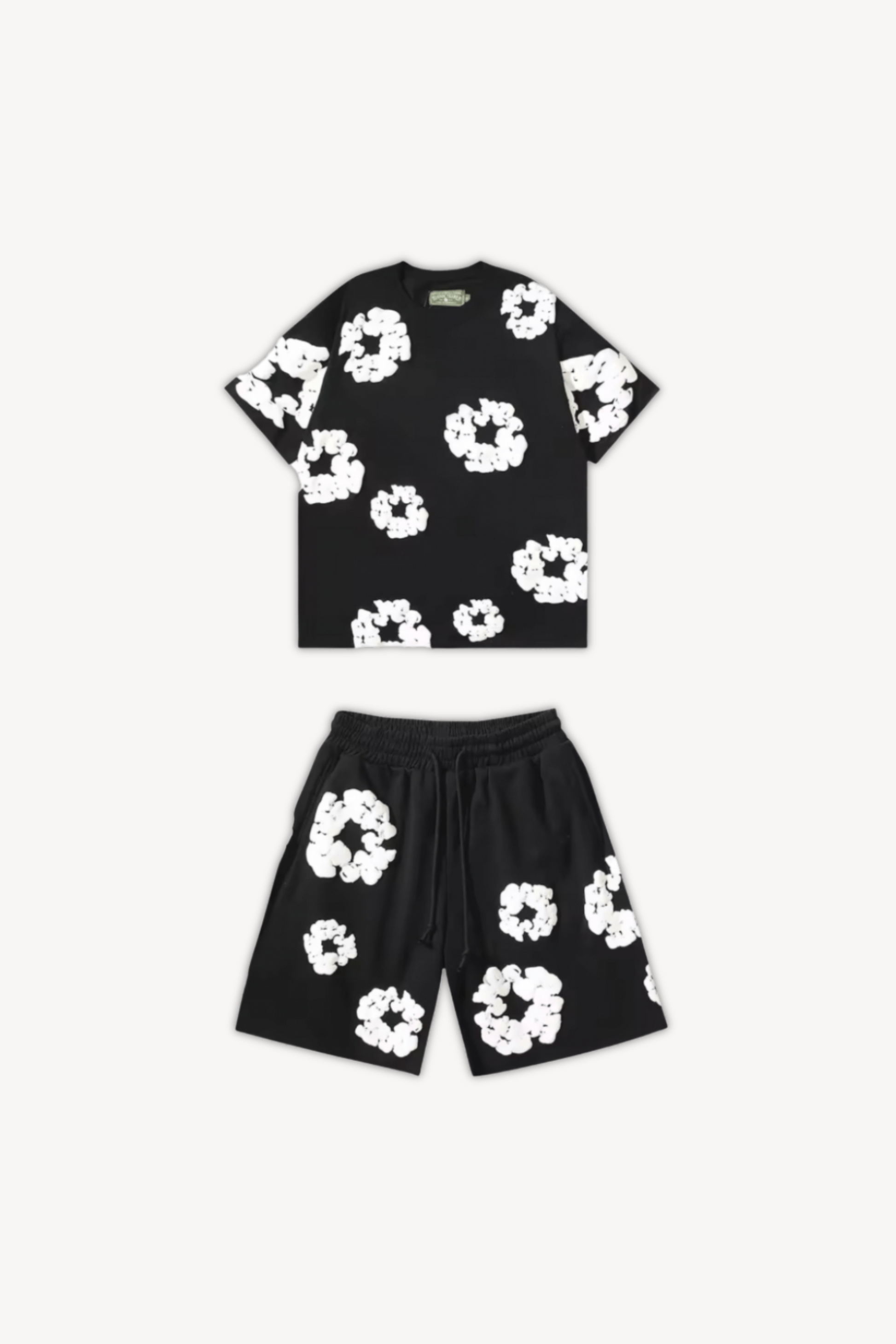 Deze uniseks set combineert luchtige zomermode met een verfijnd detail: een subtiel wreath-embleem op het T-shirt. Gemaakt van ademend katoen, ontworpen voor zowel hem als haar. Of je nu relaxt op het strand, door de stad wandelt of thuis ontspant – deze set biedt een moeiteloze stijl en ultiem comfort.