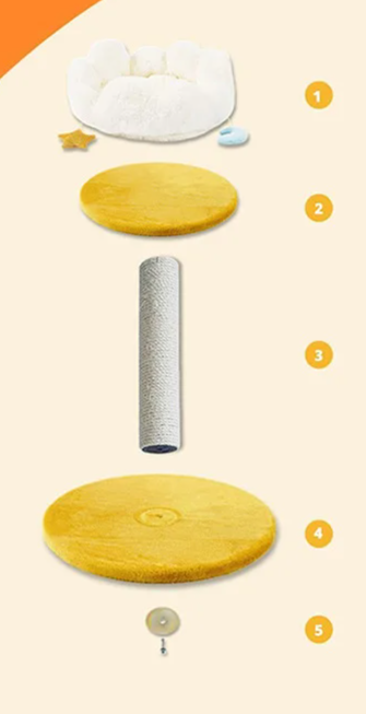 Deze kattenkrabpaal met bedje combineert spelen, krabben en ontspannen in één. De stevige krabpaal houdt nagels gezond, terwijl het zachte bedje bovenop een heerlijke rustplek biedt. Inclusief hangend speelgoed in de vorm van een maan en ster voor extra speelplezier.