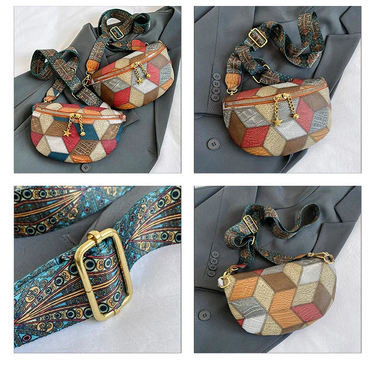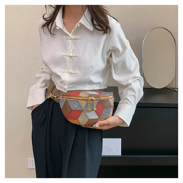 Kleurrijke Patchwork Crossbody Heuptas – Trendy Schoudertas met Uniek Design