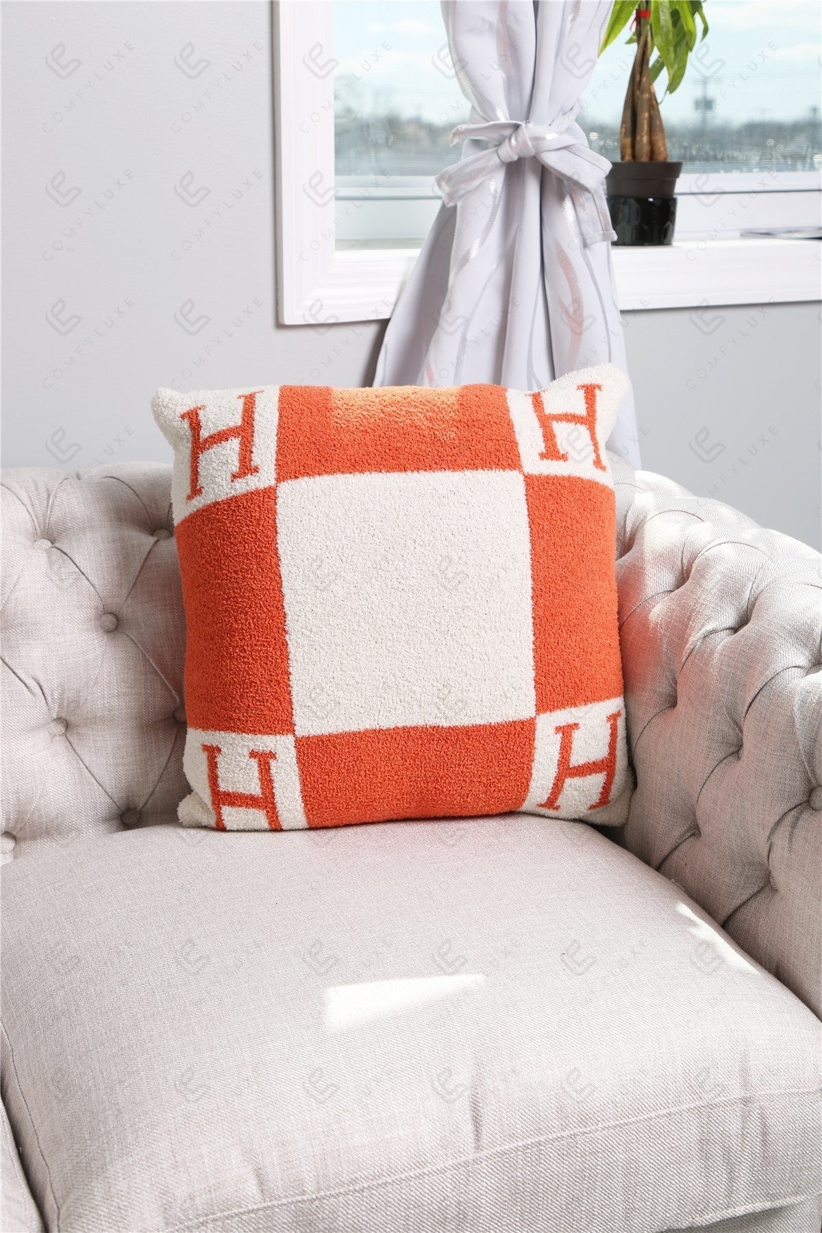 Luxe Kussenhoes met Letter H – Zachte Sierkussenhoes in Moderne Stijl