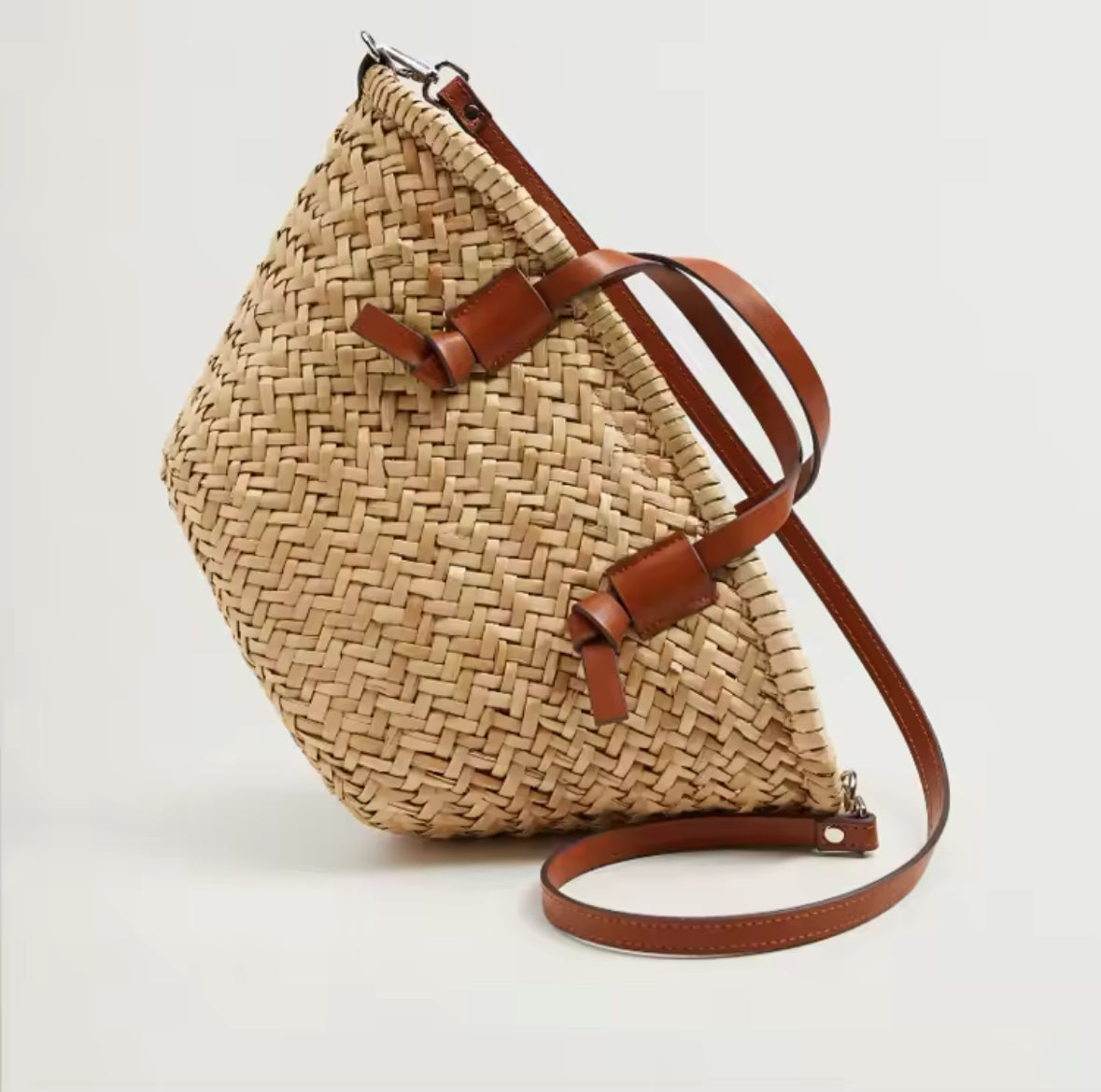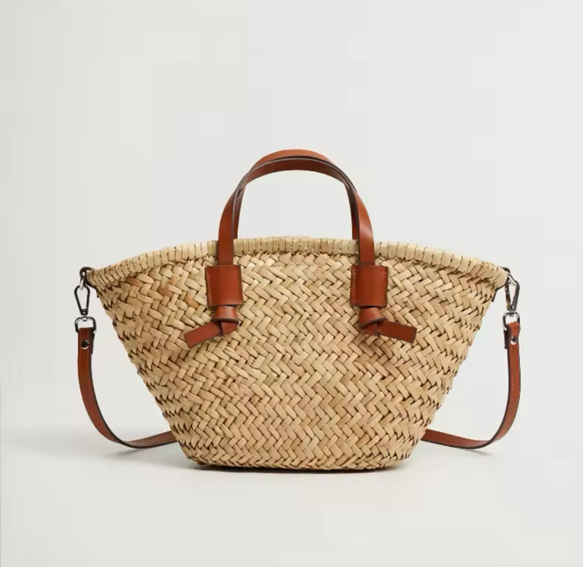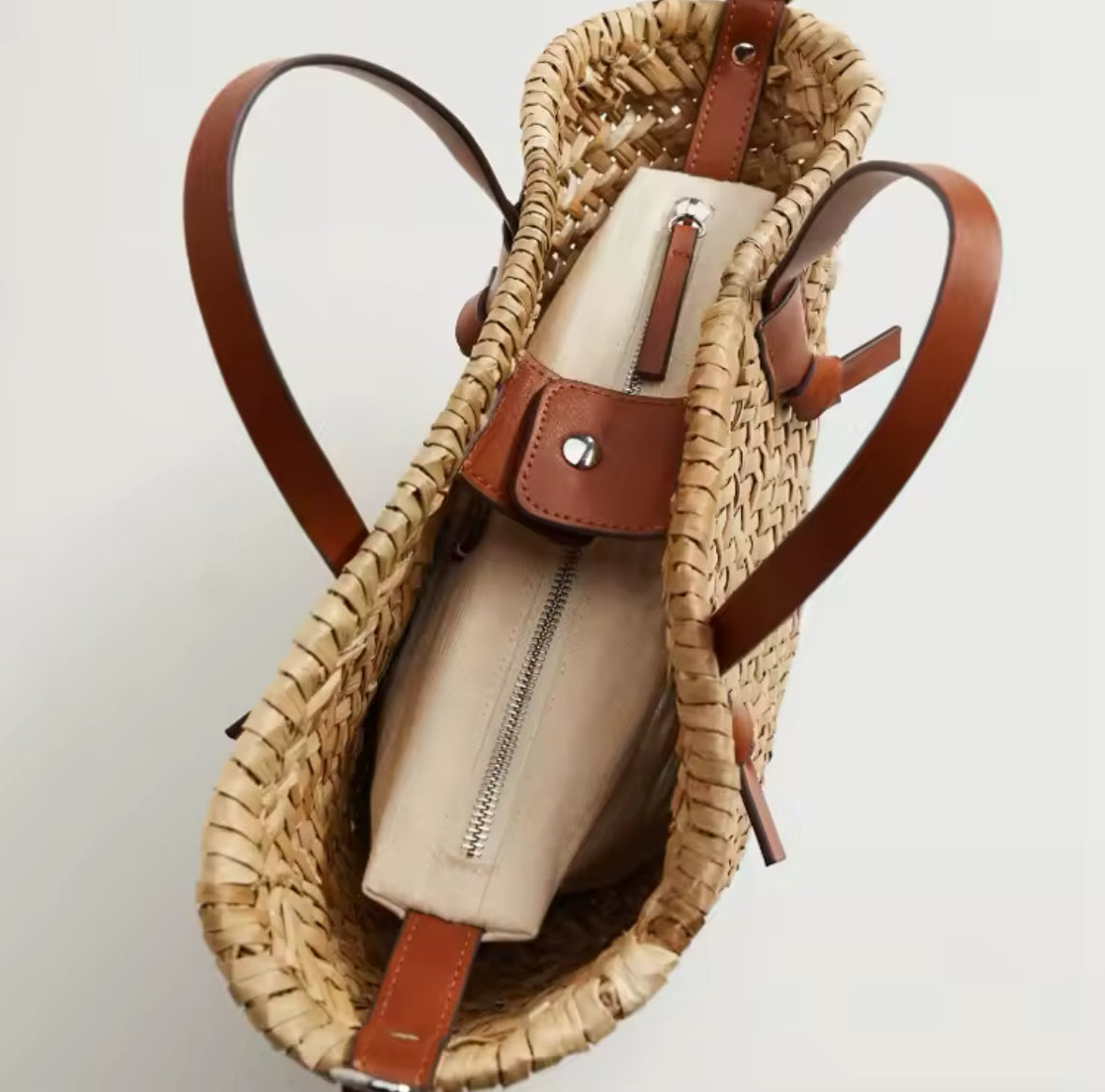 Rieten Strandtas met Leren Details – Stijlvolle Zomertas met Schouderriem