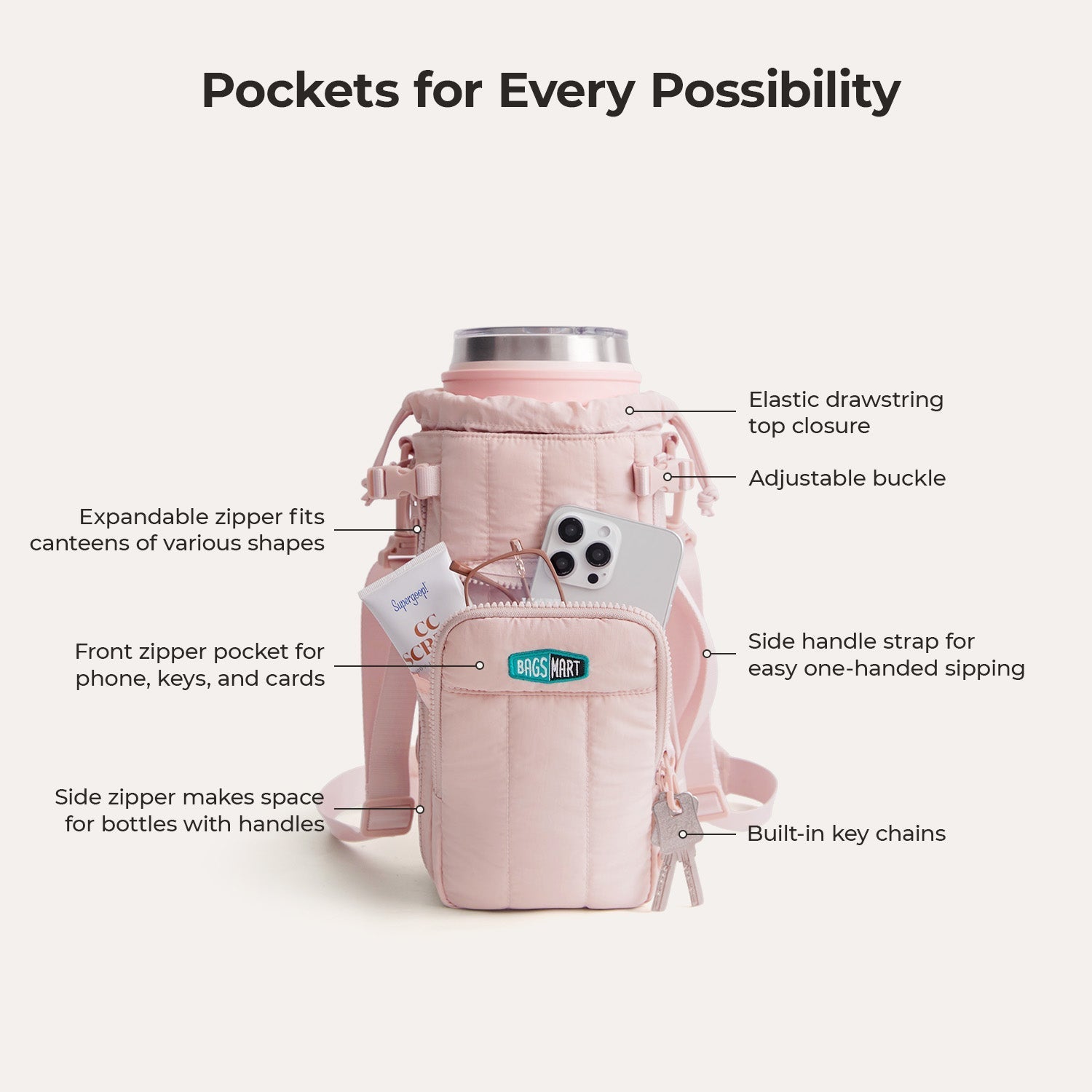 Roze Waterfles Draagtas – Verstelbare Crossbody voor Sport, Reizen & Outdoor
