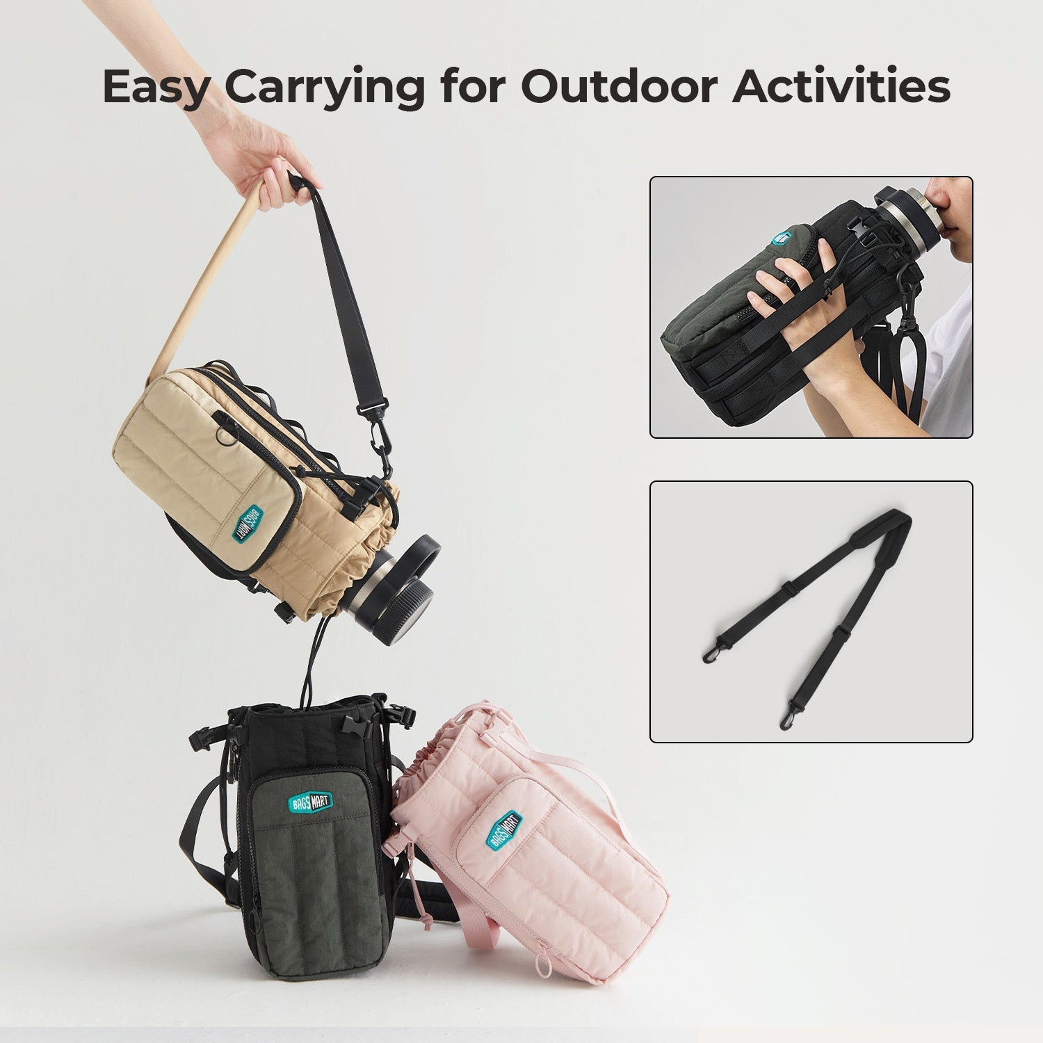 Altijd je waterfles bij de hand? Deze stijlvolle roze waterfles-draagtas is jouw perfecte metgezel voor wandelingen, sporten, festivals of dagelijks gebruik. Het slimme design past moeiteloos bij verschillende formaten flessen, waaronder de populaire Stanley en Hydro Flask modellen.
