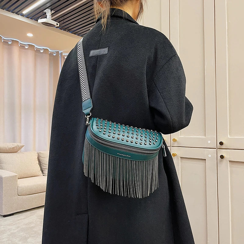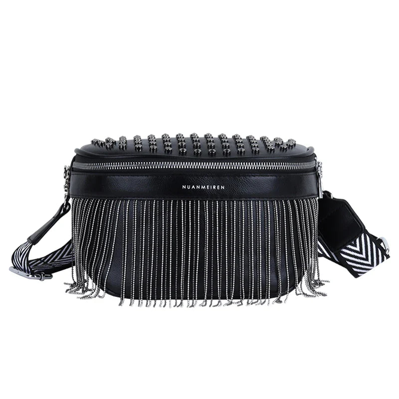 Laat je outfit spreken met deze moderne crossbody tas met franjes. Het speelse design geeft elke look een stoere en stijlvolle twist. Ideaal voor dagelijks gebruik, festivals of een avondje uit.