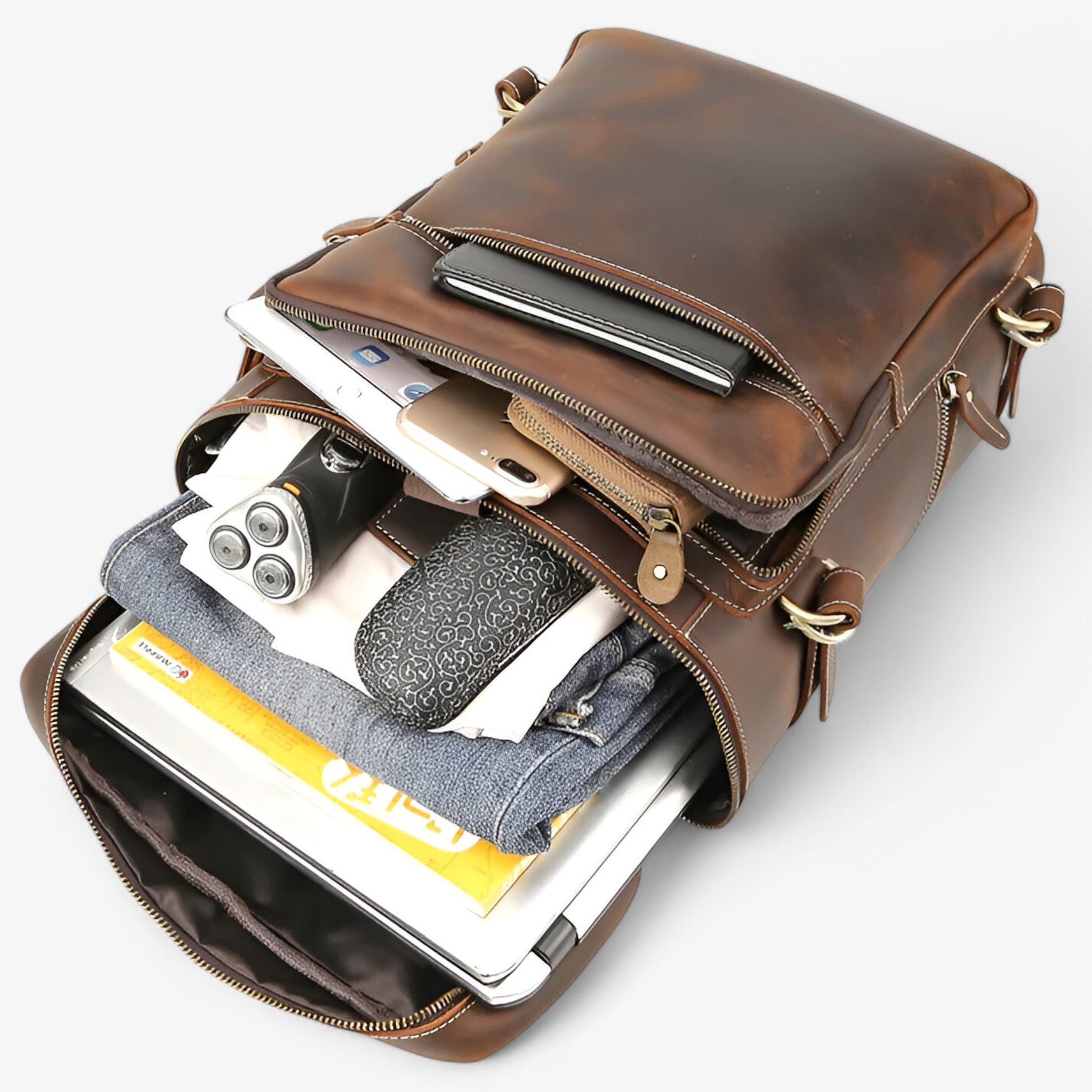 Vintage Leren Schouder- en Rugtas – Handgemaakt & Duurzaam